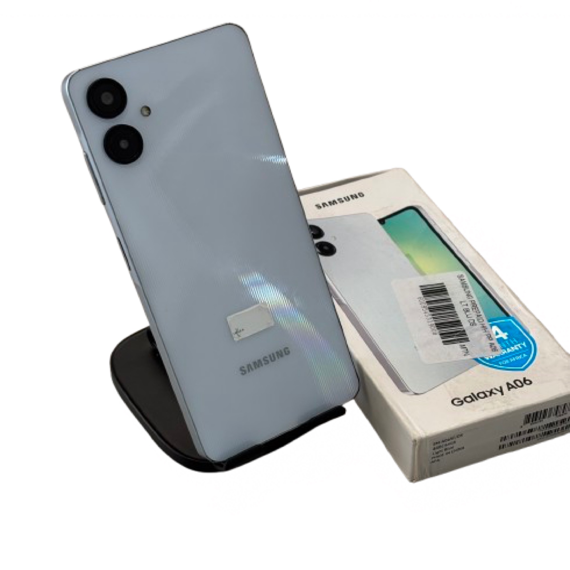 • Model: Samsung Galaxy A06 (SM‑A065F/DS) • RAM: 4GB • Storage: 64GB • Colour: Light Blue • Dual SIM: Yes • Condition: Pre‑owned, fully functional Note: minor Signs of Usage