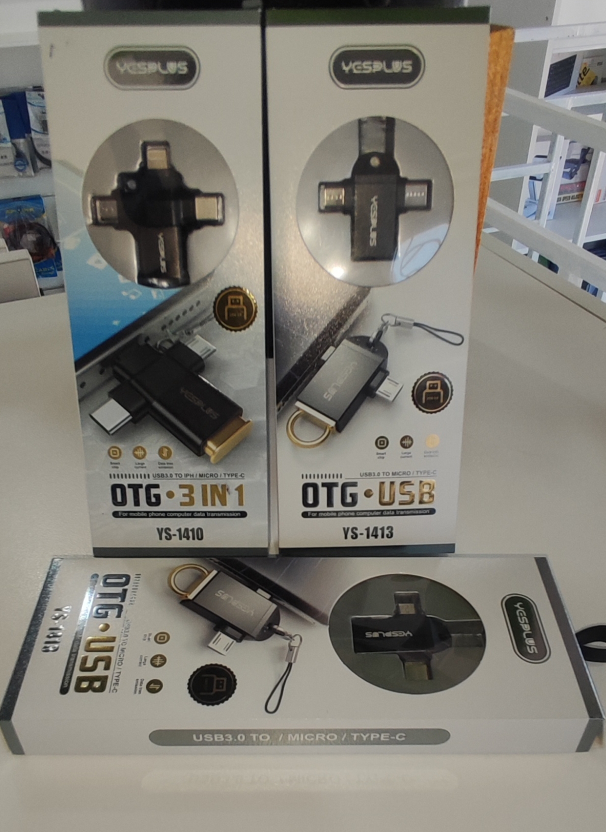 – YS-1410 (3-in-1) β USB3.0 to Lightning / Micro USB / Type-CΒ Β